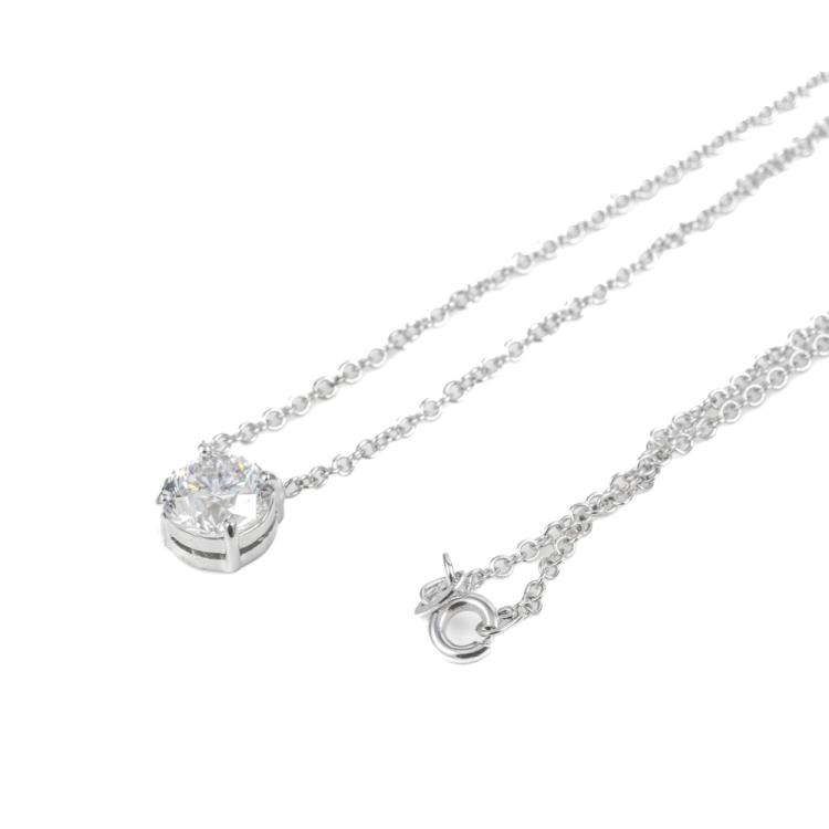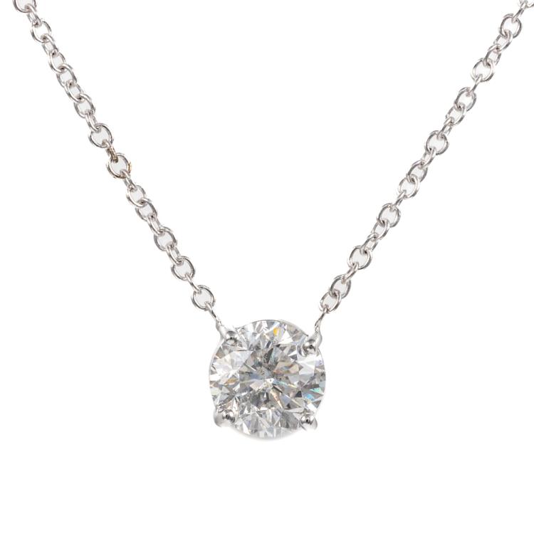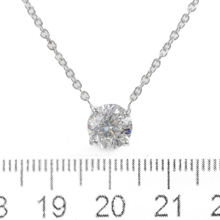 Diamond solitaire pendant with round brilliant cut Natural Diamond of 1.76ct (with GIA report graded as F P1 #7458448573). 18ct white gold with 18ct white gold chain attached. Length: 45 cm. Weight: 3.9g. (New)