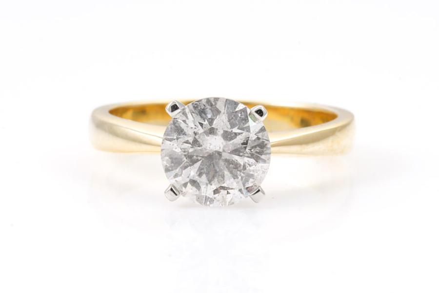 Diamond solitaire ring with round brilliant cut Diamond of 2.00cts (With GSL Report graded as H P3; AA66437/2). Ring size: M 3/4. 18ct yellow and white gold. Weight: 4.5g (New)