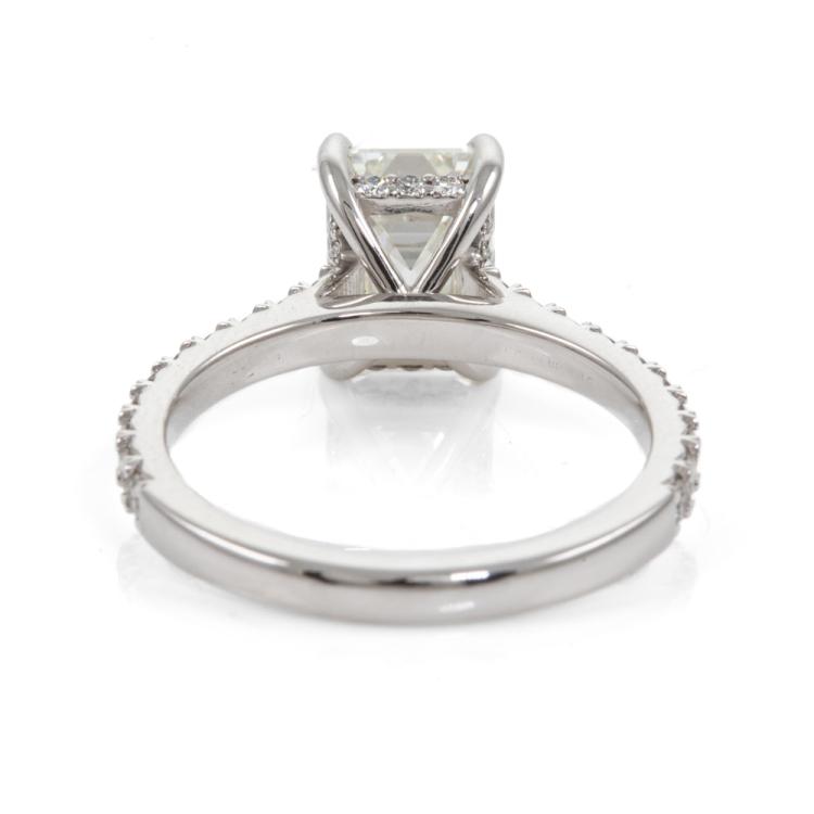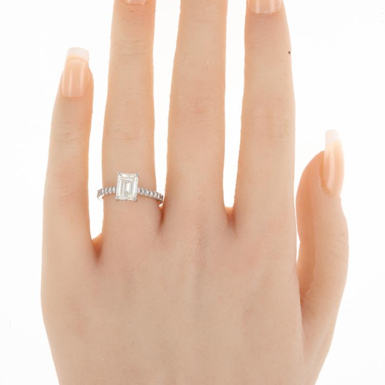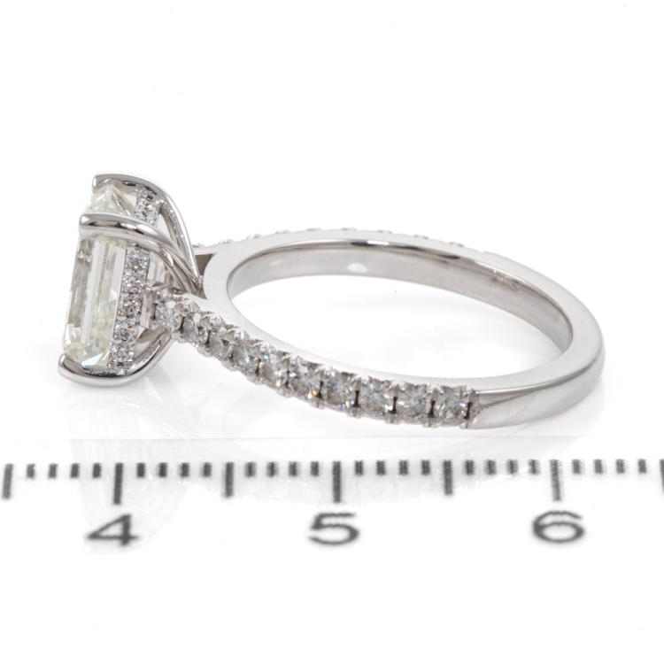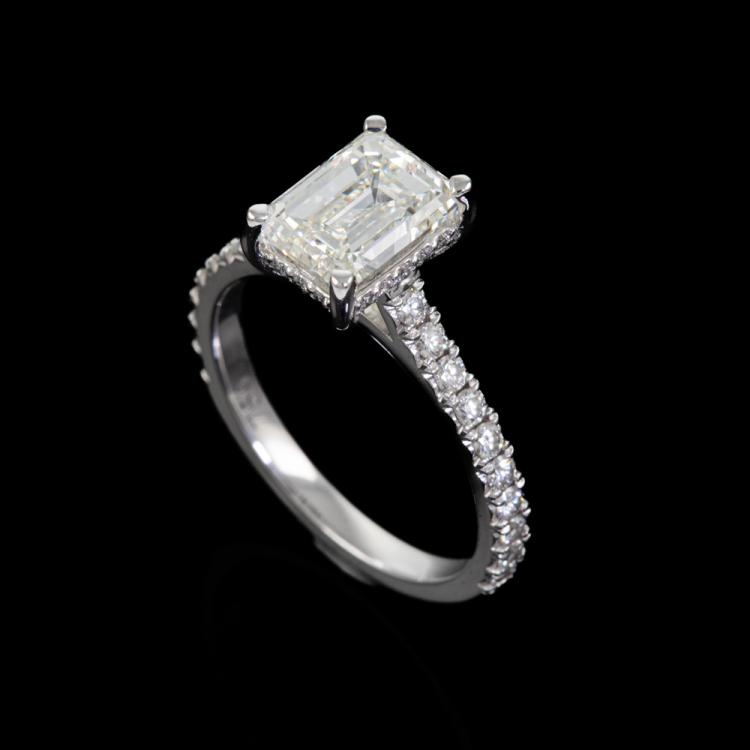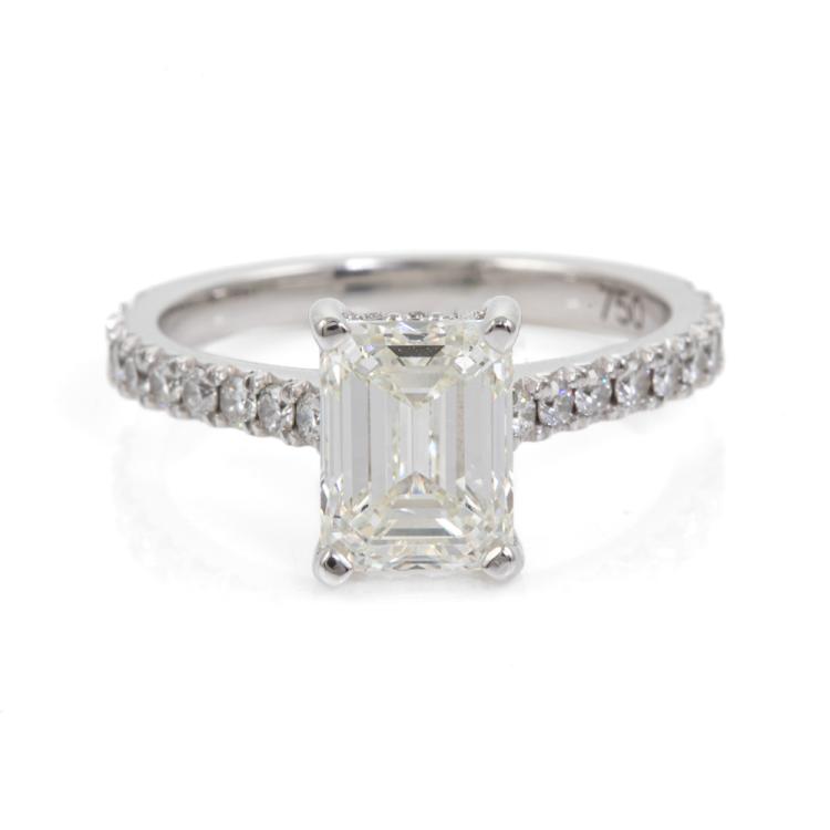 Diamond ring with an emerald cut Natural Diamond of 2.02ct (with GIA Report graded as J VS1 #522146772) and remaining round Natural Diamonds totalling 0.43cts. 18ct white gold. Ring size K1/2. Band width: 2.1mm. Weight: 3.9g. With Valuation dated 29/06/22. (Pre-owned)