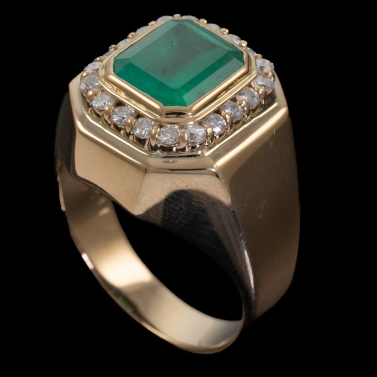 2.12ct Emerald and Diamond Mens Ring