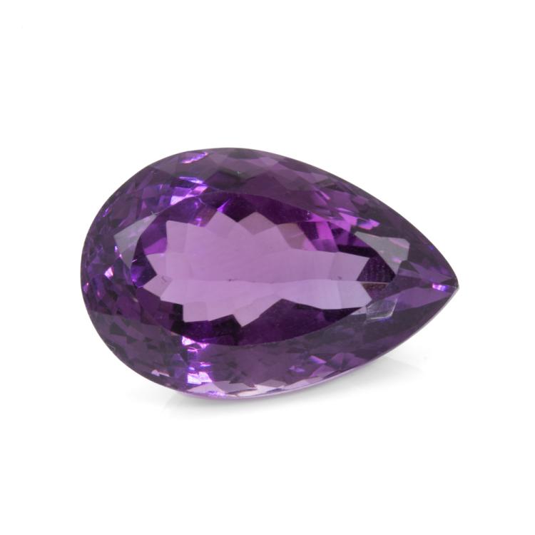 Loose pear shape Natural Amethyst of 28.59ct. Approximate dimensions: 24.1 x 16.0 x 13.2mm. (New)^