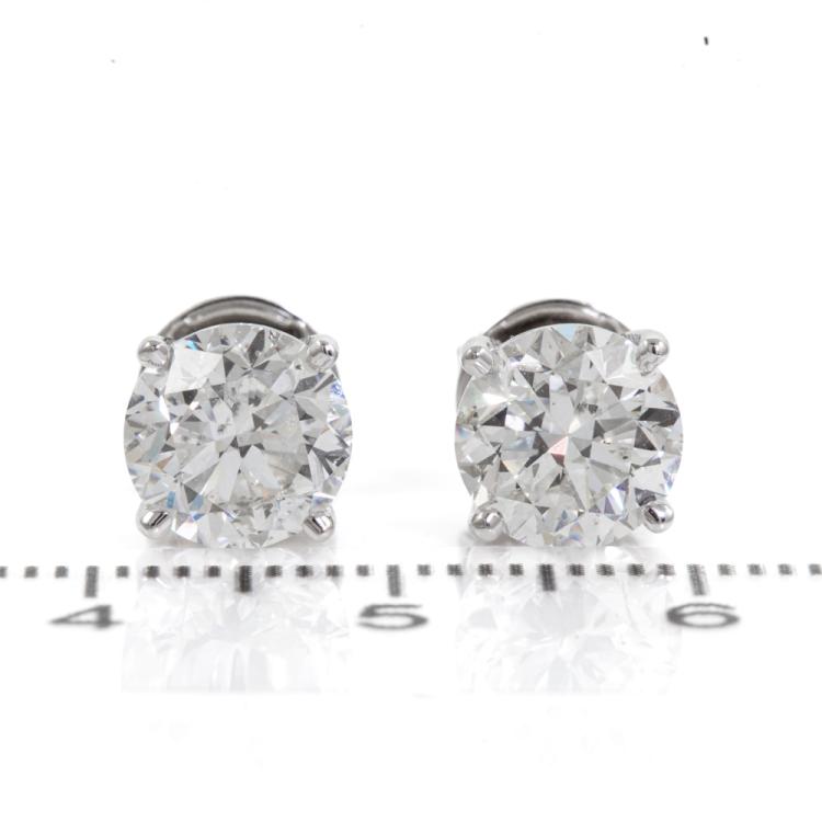 Diamond stud earrings with 2 round brilliant cut natural Diamonds totalling 4.01cts (with GIA Reports graded as H SI2 and I SI2, #7466368160, 2466053975). 18ct white gold. Weight: 3.9g (New)