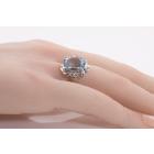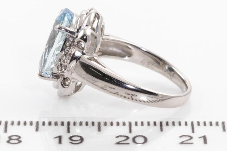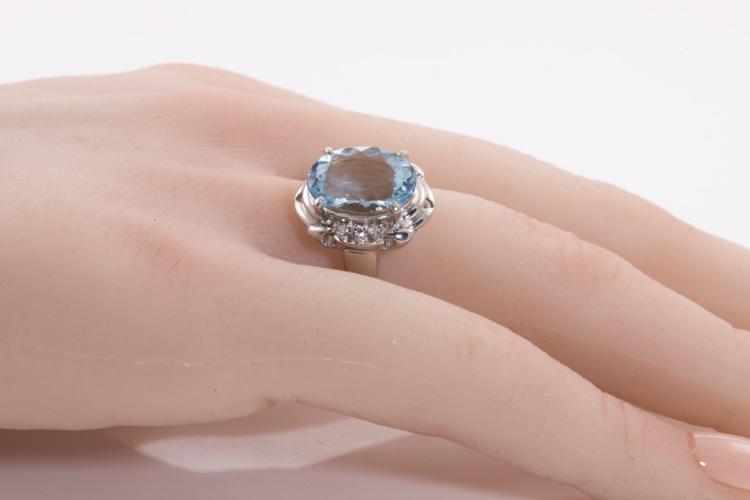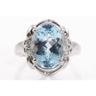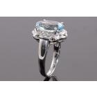 Aquamarine and Diamond ring with oval shape natural Aquamarine of 4.53ct and round natural Diamonds totalling 0.09cts. Platinum-900. Ring size L1/2. Weight: 7.6g. (Pre-owned)