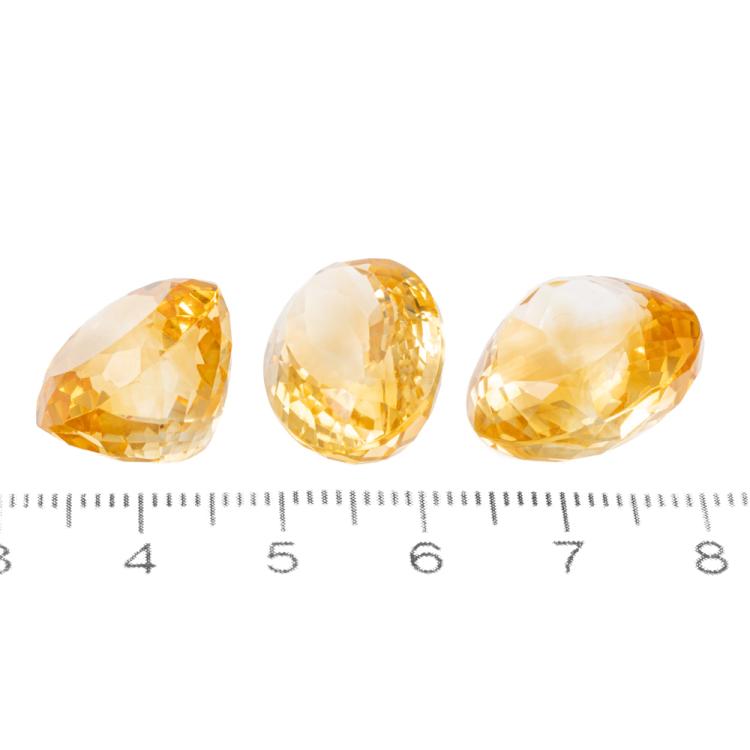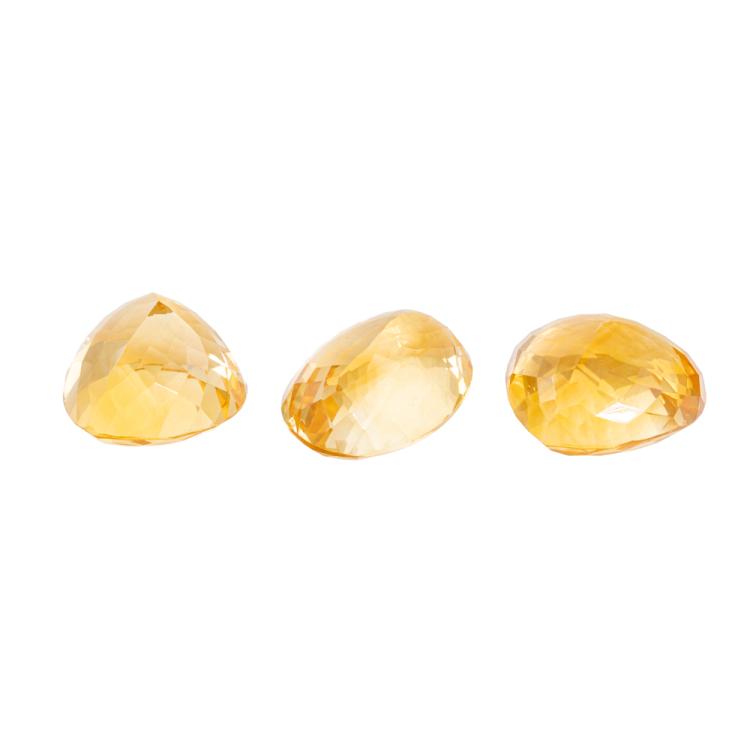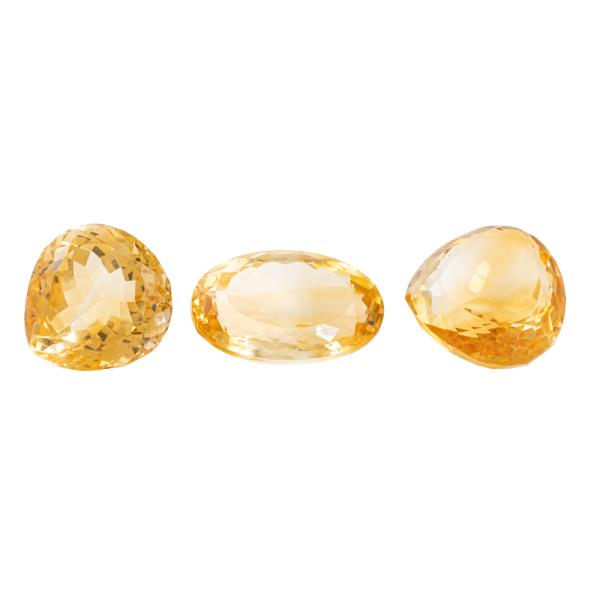 A parcel of 3 Loose Gemstones with 1 oval shape natural Citrine of 17.44ct approximately 21.2mm x 13.9mm x 9.2mm and 2 pear shape natural Citrine's totalling 36.85ct approximately 17.7mm x 17.9mm x 9.7mm, 17.0mm x 16.2mm x 11.4mm. (As New)