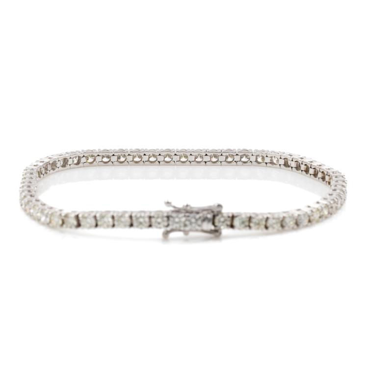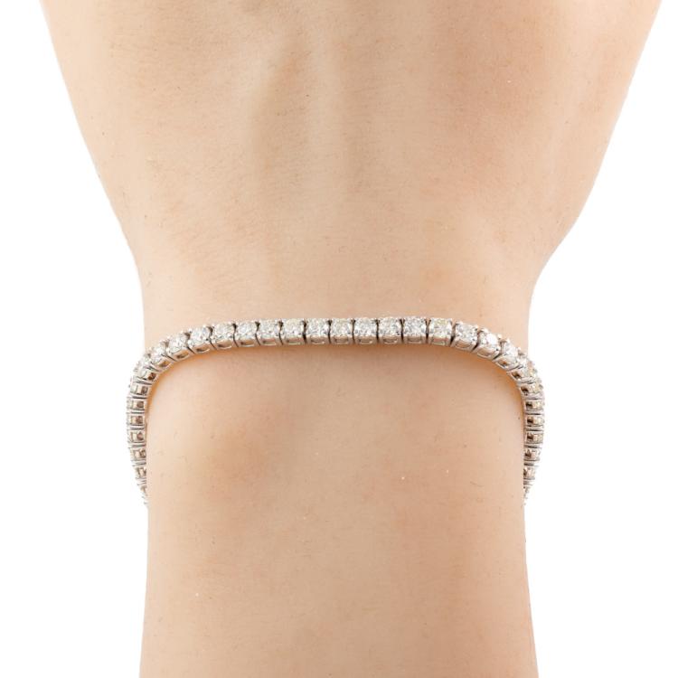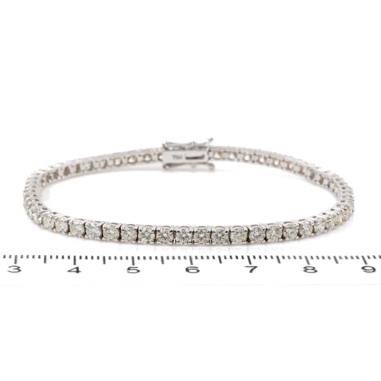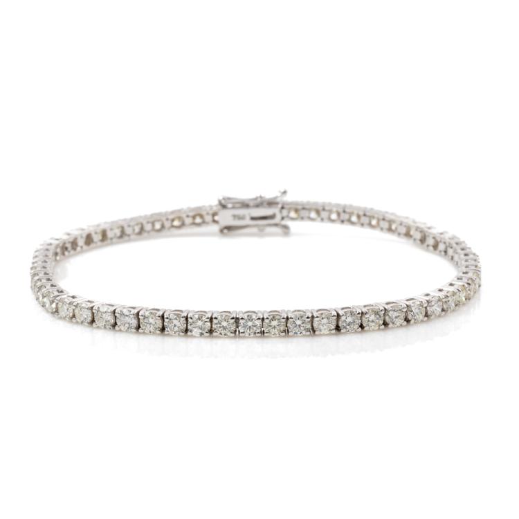 Diamond tennis bracelet with 57 round brilliant cut Natural Diamonds totalling 5.87cts. (Estimated grading: I-J SI). 18ct white gold. Length: 18cm. Weight: 10.6g. With Valuation Certificate #417950. (New)