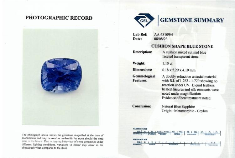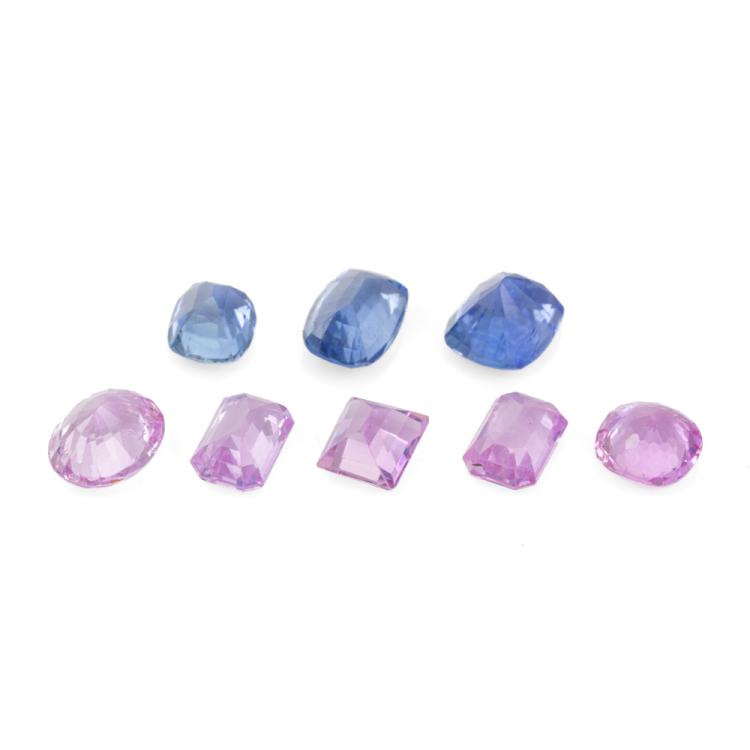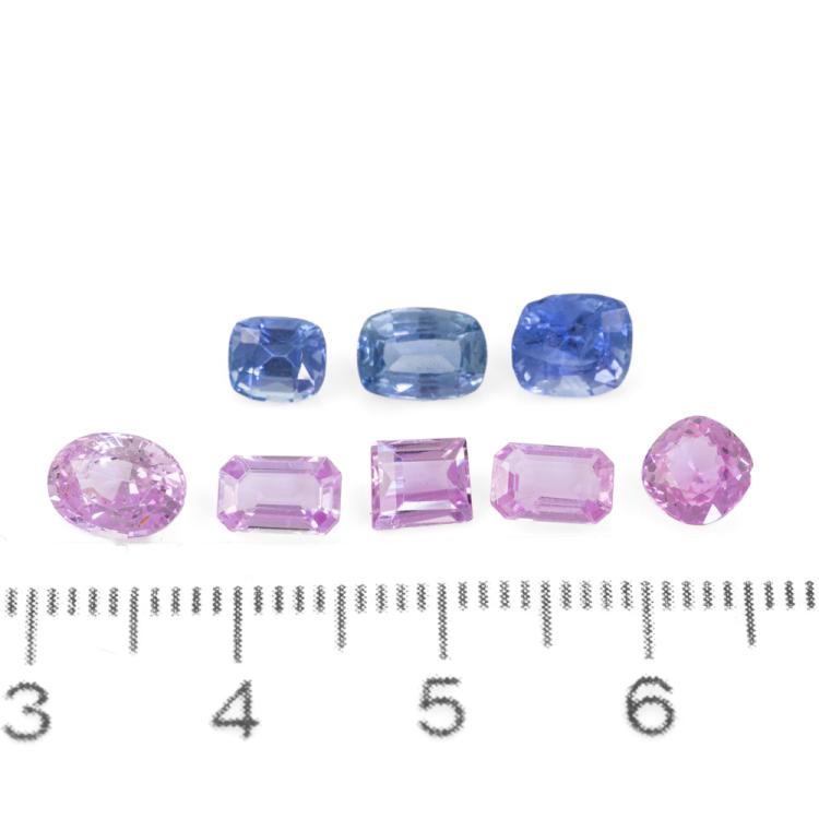 A loose parcel of mixed shape pink and blue Ceylon Natural Sapphires totalling 6.34ct (including a cushion cut blue Sapphire of 1.10ct with GSL Summary Report #AA68109/4, Origin: Ceylon). (As New)