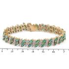 Emerald and Diamond bracelet with marquise cut natural Emerald totalling 6.50ct and round natural Diamonds totalling 0.50ct (Estimated grading: I-J SI). 18ct yellow gold. Length: 16cm. Weight: 26.6g. With Certificate #418694. (Pre-Owned)