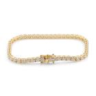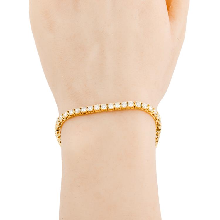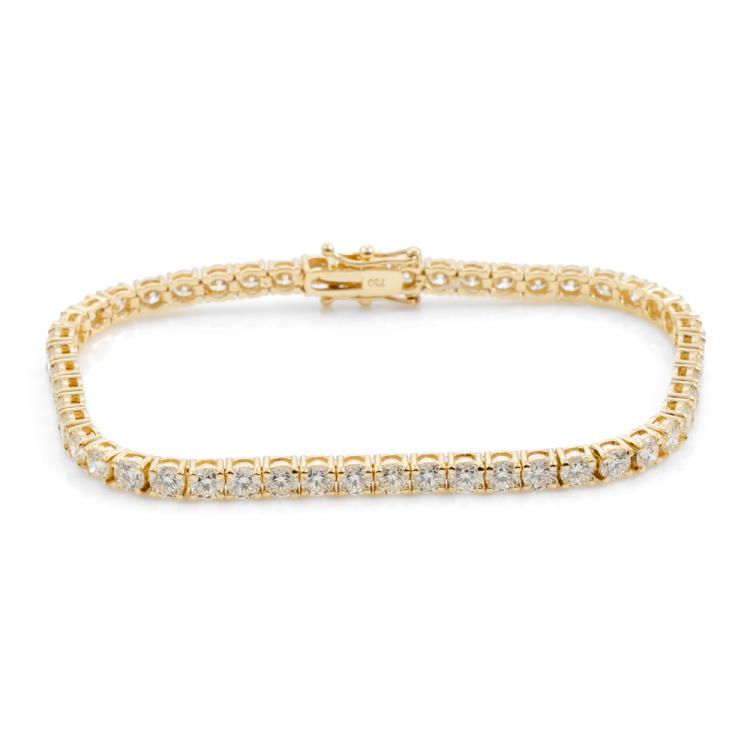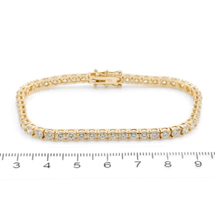 Diamond tennis bracelet with 50 round brilliant cut natural Diamonds totalling 7.50ct (Estimated grading: J-K VS). 18ct yellow gold. Length: 18cm. Weight: 12.1g. With Valuation Certificate #418451. (New)