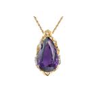 Amethyst and Diamond pendant with a pear shape Natural Amethyst of 77.44ct and round Natural Diamonds totalling 0.41ct (Estimated grading: H-I SI). 18ct yellow gold and platinum 900 with 56cm 18ct yellow gold chain. Weight: 38.6g. With certificate #417473. (Pre-owned)