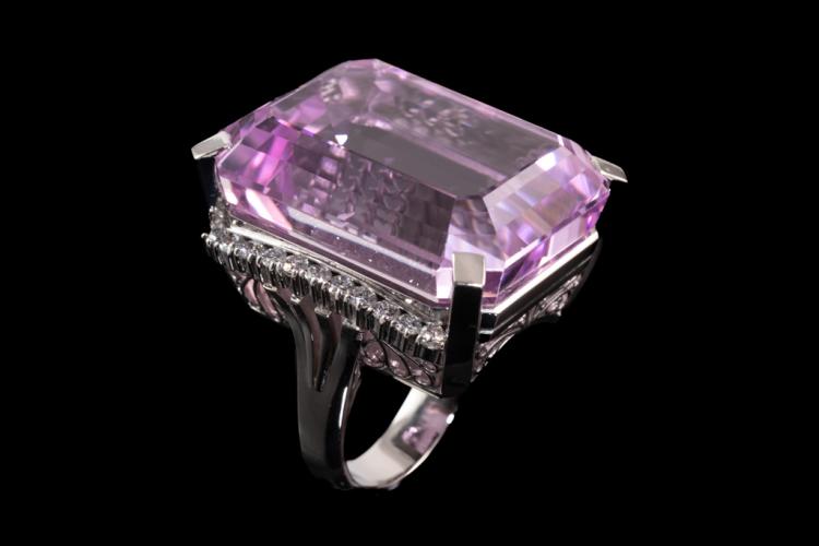 85.94ct Kunzite and 0.78ct Diamond Ring