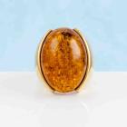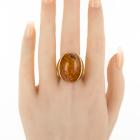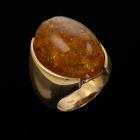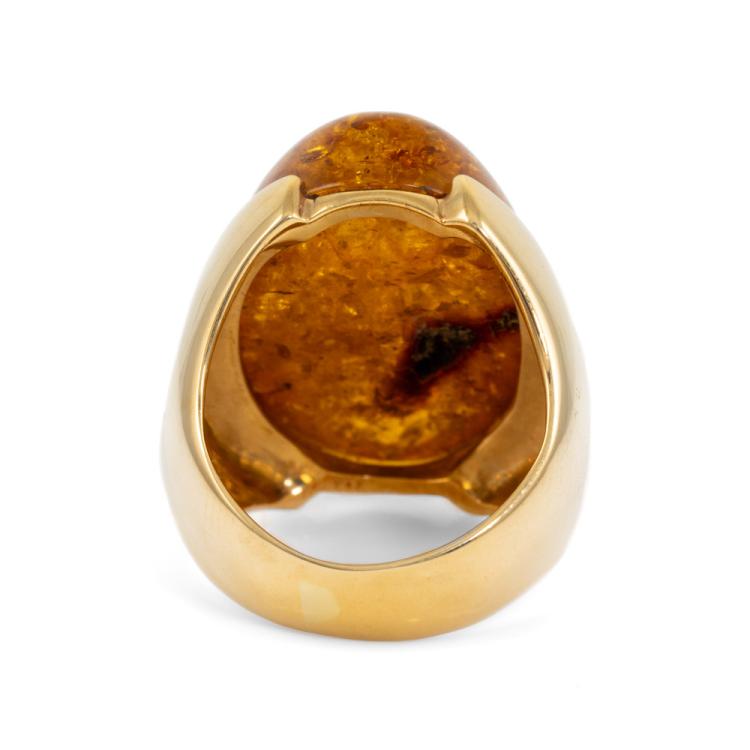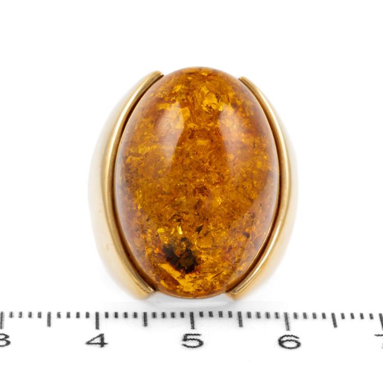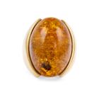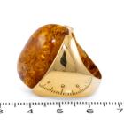 Cerrone Amber ring with oval cabochon cut Amber of size 24.9 x 17.7 x 10.5mm. 18ct yellow gold. Ring size: N1/2. Minimum band width: 6.3mm. Weight: 16.5g. (Pre-Owned)^