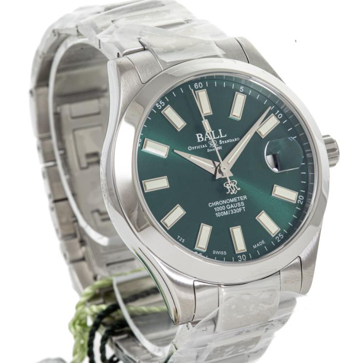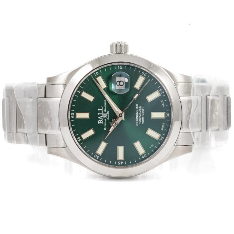 Ball Engineer III Marvelight stainless steel automatic mens watch. Green dial, date, case diameter: 40mm, wrist size: 18.5cm, Swiss made. Ref# NM9026C-S6CJ-GR. With Ball stainless steel bracelet and clasp. With Ball Premium International Warranty Card, Ball Chronometer Certificate and Ball box. 12 month FSA warranty (As new, Note: case and bracelet on original wrapping)