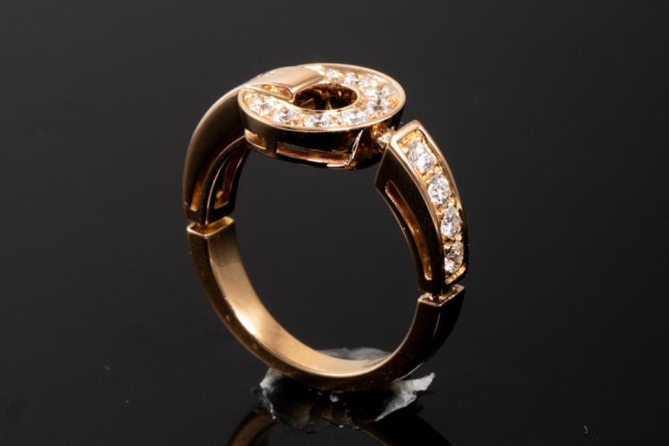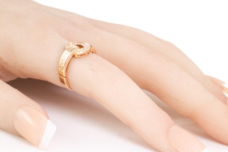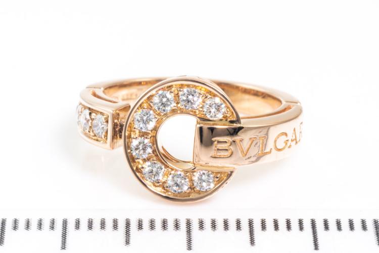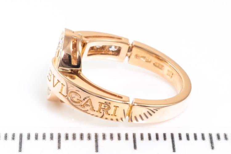 Bvlgari Bvlgari Diamond ring with 12 round Diamonds totalling 0.28ct. 18ct rose gold. Ring size H - ring resizing is not recommended. Made in Italy. Weight: 5.1g. With Bvlgari box and certificate dated back 11/11/06. (Pre-owned)