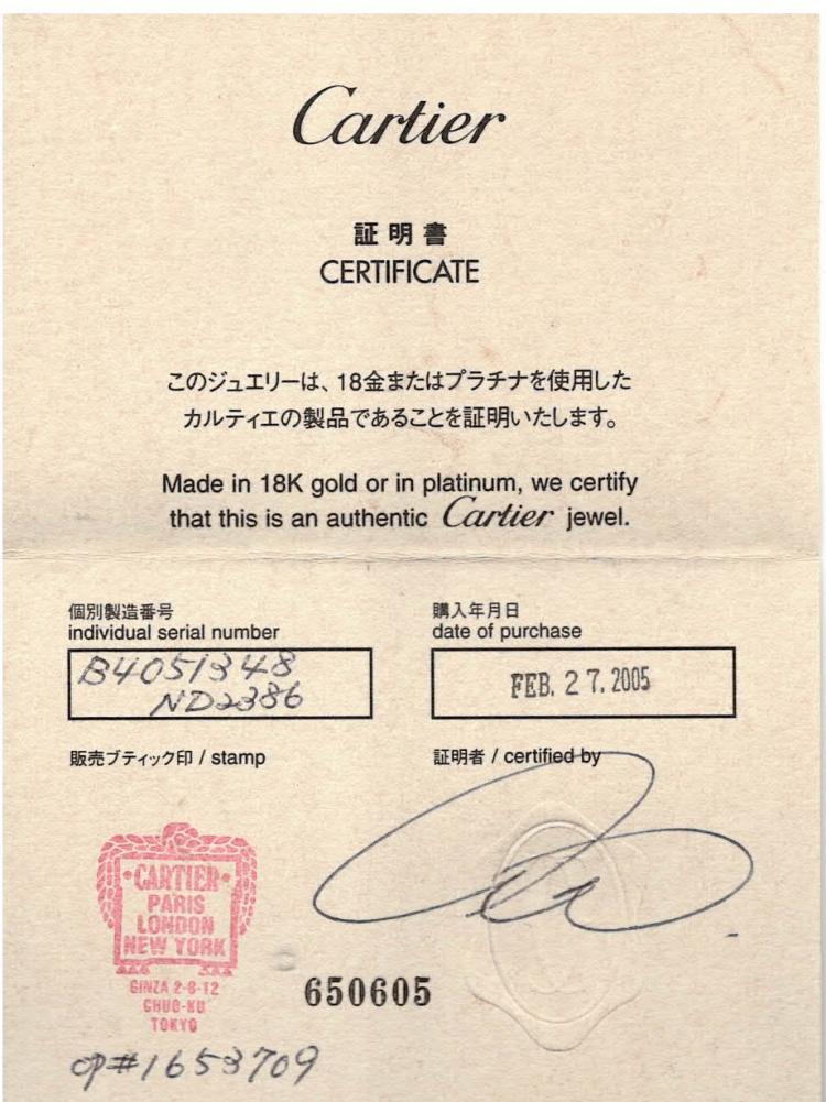C De Cartier wedding ring with a round Natural Diamond of 0.03ct. Cartier stamped size 48, I - ring resizing is not recommended. Band width 3mm. Platinum 950. 4.7g. With Cartier box & Cartier certificate dated 27/02/05. (Pre-owned)
