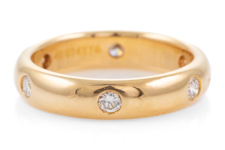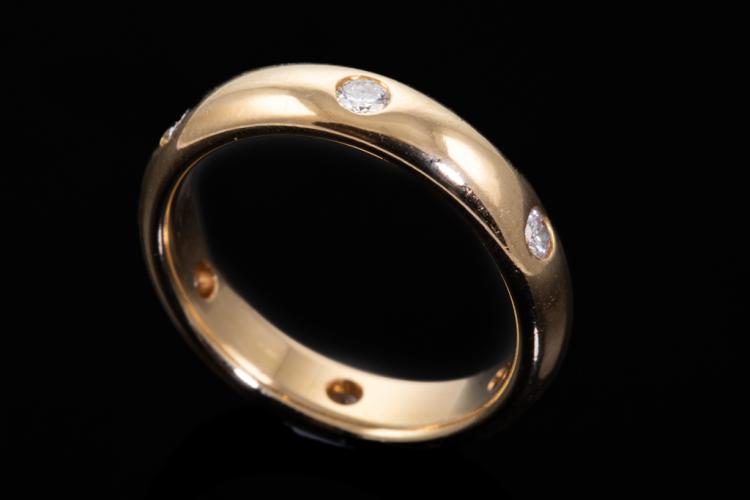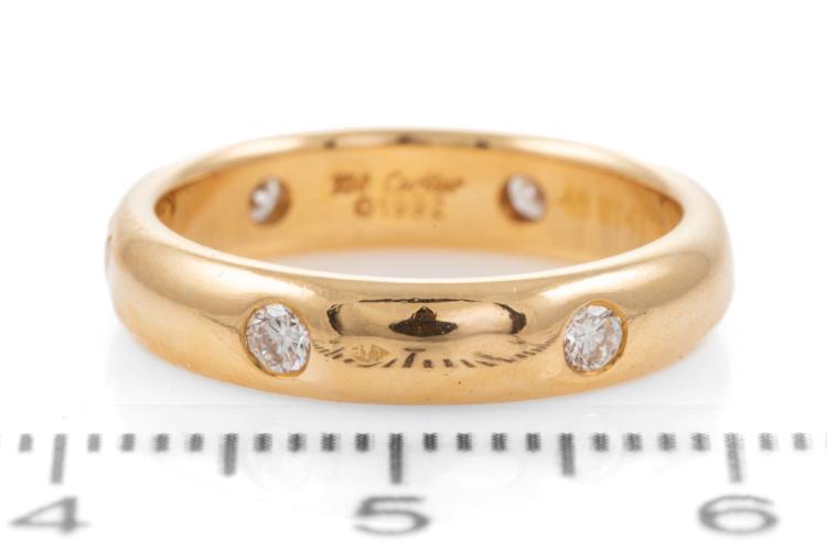 Cartier Stella Diamond ring with round Natural Diamond totalling 0.24ct. 18ct yellow gold. Cartier stamped size 49, note actual size is I - due to being resized. Band width: 4.0mm. Weight: 4.8g. (Pre-owned)