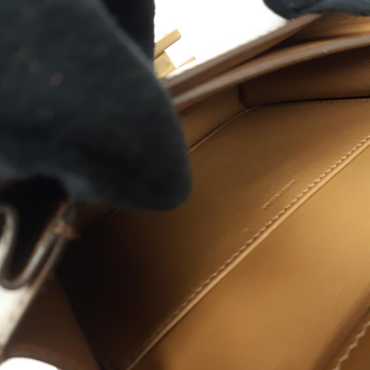 Celine teen classic box bag in fine smooth box calfskin leather in brown. Featuring an removable and adjustable leather shoulder strap and gold-toned hardware. The frontal gold press lock on flap opens to matching brown leather interior with two main compartments, one with a patch pocket. Approximate dimensions: 18.5cm(L) x 16cm(H) x 5.5cm(D), shoulder drop 39-50cm. Accompanied by a Celine dustbag, box, and purchase receipt from boutique (Dated 10/01/2020). (Pre-owned)