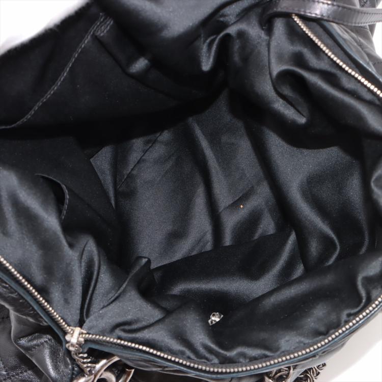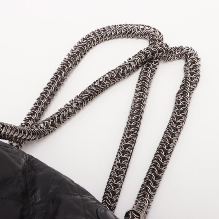 Chanel chain shoulder bag in black, diamond quilted soft lambskin. Featuring silver tone hardware, chain-link shoulder straps, exterior zipped pockets at front and rear, CC logo stitched at the bottom. Top zip closure opens to a black satin lining interior with patch and zipped pockets. Approximate dimensions: 36cm(L) x 33cm(H) x 16.5cm(D), 27cm shoulder height. With Entrupy Certificate of Authenticity. (Pre-owned)