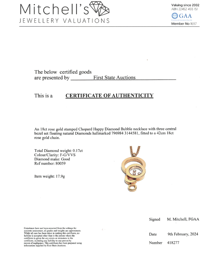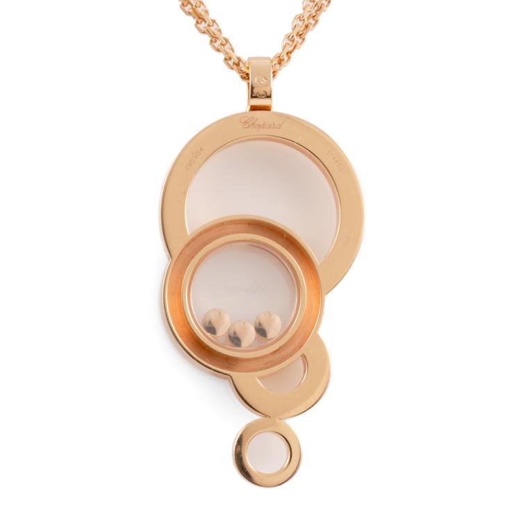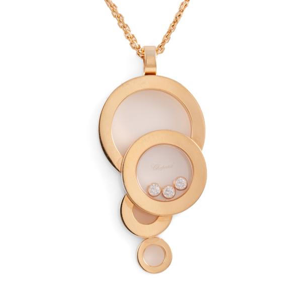 Chopard Happy Diamond Bubble necklace with 3 floating round Natural Diamonds totalling 0.17cts. Chopard 18ct rose gold with 39cm double 18ct rose gold chain. Weight: 17.9g. With Certificate 418277. (Pre-owned)