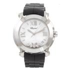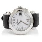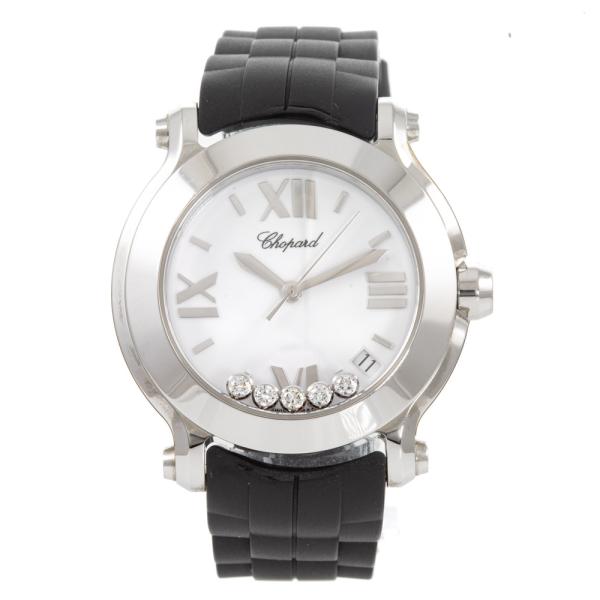 Chopard Happy Sport stainless steel quartz watch. White dial, 5 floating Diamond, date, case diameter: 36mm, strap length: 19cm, Swiss made. Ref# 8475. With Chopard black rubber strap and buckle. With Certificate of Authenticity, Chopard Certificate of Origin dated 16/12/2001 and Chopard box. 3 month FSA warranty (Pre-owned)