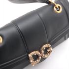 Dolce & Gabbana Amore shoulder bag in black smooth leather. Featuring a facing push-up button closure embellished with a golden D&G logo with pearl details, gold tone hardware. The frontal flap opens to a black microfibre lining interior with 2 compartments. Approximate dimensions: 27cm(L) x 16.5cm(H) x 11cm(D), 43cm adjustable shoulder strap height. With Entrupy Certificate of Authenticity. (Pre-owned)