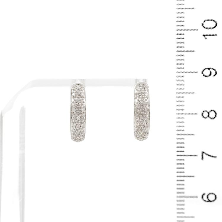 Two piece set: 1) Diamond hoop earrings with round natural Diamonds totalling 0.10ct. 9ct white gold. 2) Diamond heart designed pendant with round & floating natural Diamonds totalling 0.10ct. 9ct white gold. No chain provided. Combined weight of 3.2g. (As new)^