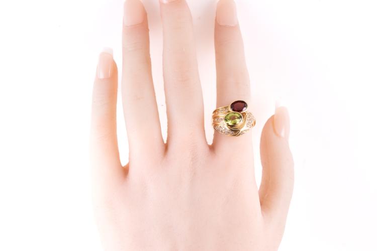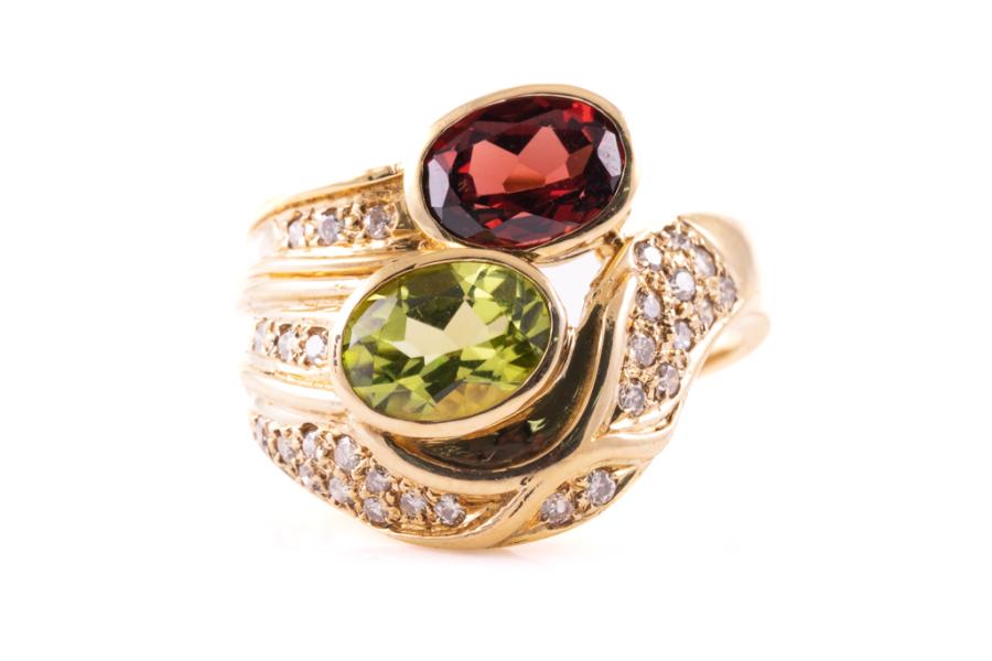 Garnet, Peridot and Diamond Ring