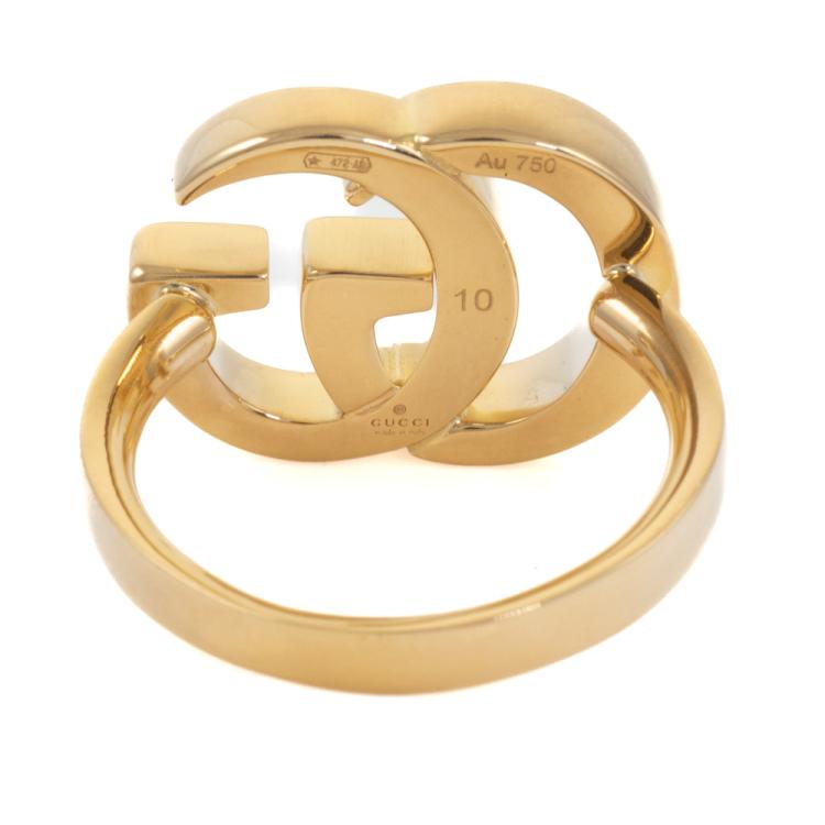 Gucci GG Running Ring. 18ct yellow gold. Ring size: J1/4,- ring resizing is not recommended. Band width: 2.6mm. Weight: 7.8g. (Pre-owned)
