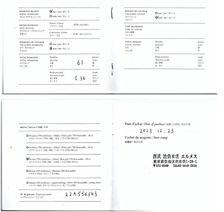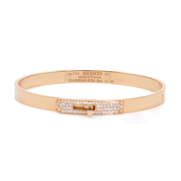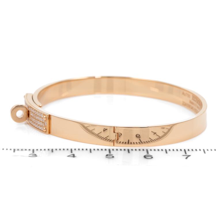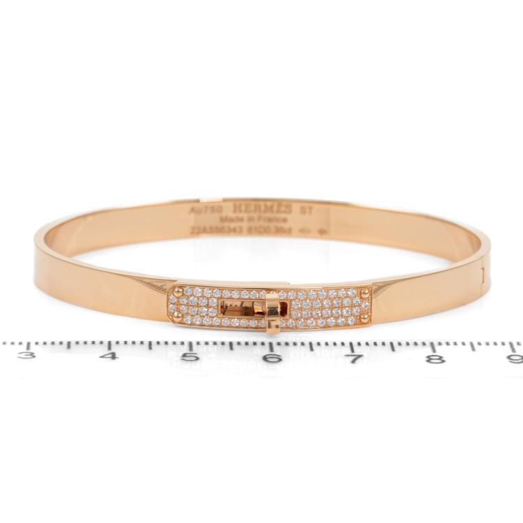 Hermes Kelly Diamond bracelet with round Natural Diamonds totalling 0.36ct (Estimated grading: F-G VVS). 18ct rose gold. Circumference: approx. 15.5cm. Weight: 24.3g. With Hermes Certificate dated 23/12/2023 and Hermes box. (Pre-owned)