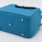 Hermes Lindy 26 in Blue Zanzibar Evercolor (C: 2018). Featuring silver-toned hardware, exterior pockets on sides, rolled handles, cross-over top flap with zip and turned-lock closures. This opens to a blue leather spacious interior with side patch pockets. Approximate dimensions: 26cm(L) x 19cm(H) 12.5cm(D), 11cm handle drop and 26cm shoulder drop. Accompanied by Hermes booklets, raincoat, dust bag, box. With Entrupy Certificate of Authenticity. (Pre-owned)