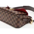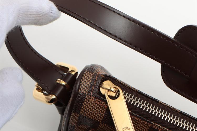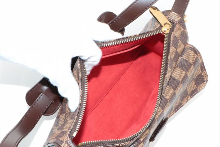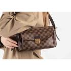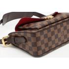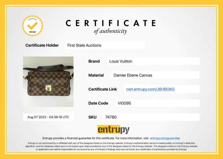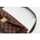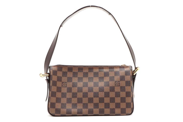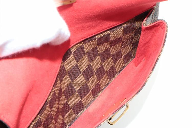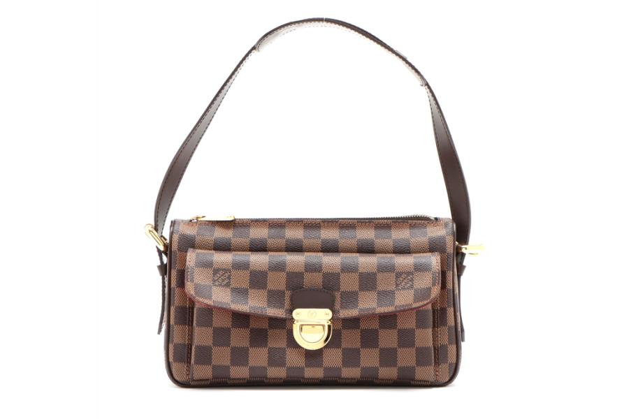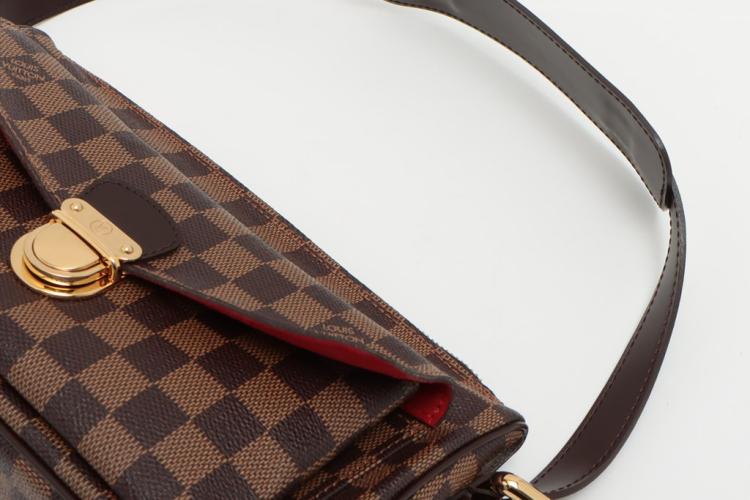 Louis Vuitton Ravello GM bag in Damier Ebene coated canvas. Featuring an external pocket with flap and push lock closure, gold-toned hardware, zip closure on top. The top opens to a red microfiber lining interior with a patch pocket. Approximate dimensions: 26.5cm(L) x 15cm(H) x 8cm(D), 18cm adjustable shoulder strap drop. Accompanied by a LV dust bag. With Entrupy Certificate of Authenticity. (Pre-owned)