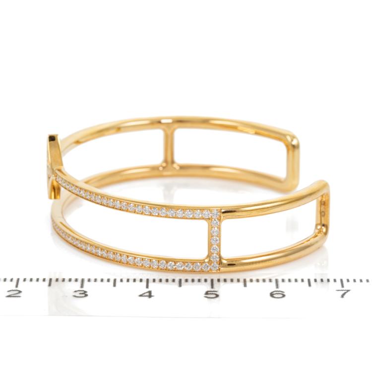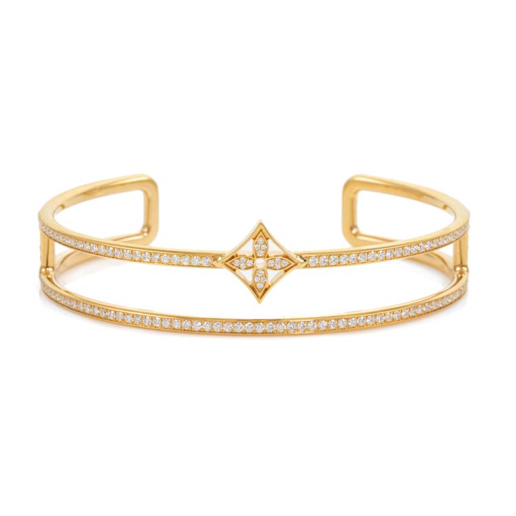 Louis Vuitton Idylle Blossom Two-Row Diamond bracelet with round natural Diamonds totalling approximately 1.17ct (Estimated grading: F VS). 18ct yellow gold. Stamped size: 15. Made in France. Weight: 19.1g. With Louis Vuitton box. With Certificate: 418593. (Pre-owned)