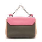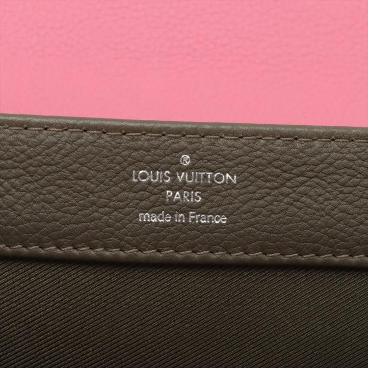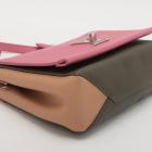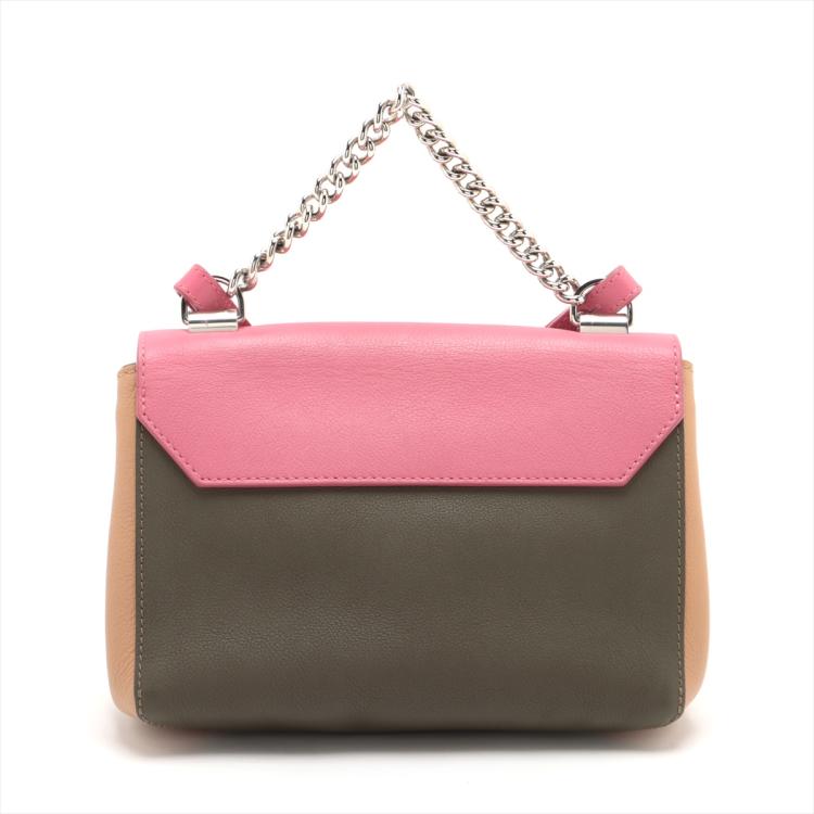 Louis Vuitton LockMe II BB in calfskin leather in pink, dark hunter green and beige. Featuring silver tone hardware, chain handle, snap buttons on sides, full flip-over flap with LV logo turned lock closure. It opens to a patch pocket and fabric lining interior. Approximate dimensions: 22cm(L) x 15,5cm(H) x 6.5cm(D), 9cm handle height and 54cm detachable and adjustable strap height. Accompanied by a LV dust bag. With Entrupy Certificate of Authenticity. (Pre-owned)