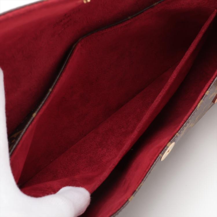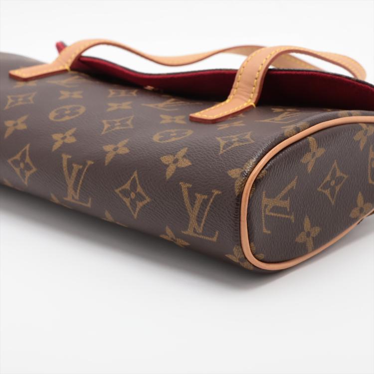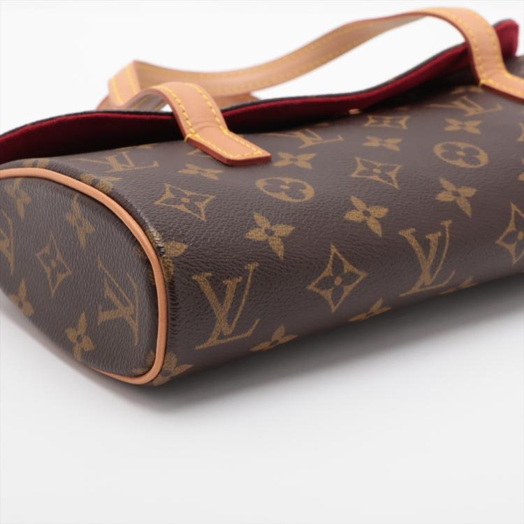 Louis Vuitton Sonatine in Monogram coated canvas. Featuring vachetta leather trims and top handles, an exterior pocket at back. The front-facing flap opens to a rouge red microfiber lining interior with a patch pocket. Approximate dimensions: 28cm(L) x 14cm(H) x 6.5cm(D), 10.5cm handle drop. Accompanied by LV dust bag and box. With Entrupy Certificate of Authenticity. (Pre-owned)
