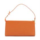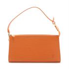 Louis Vuitton Pochette Accessories 24 in Mandarin Epi leather. Featuring gold-tone hardware, single flat shoulder/wrist strap. The top zipper opens to a matching suede interior. Approximate dimensions: 24cm(L) x 12.5cm(H) x 2.5cm(D). Accompanied by a LV dust bag. With Entrupy Certificate of Authenticity. (Pre-owned)