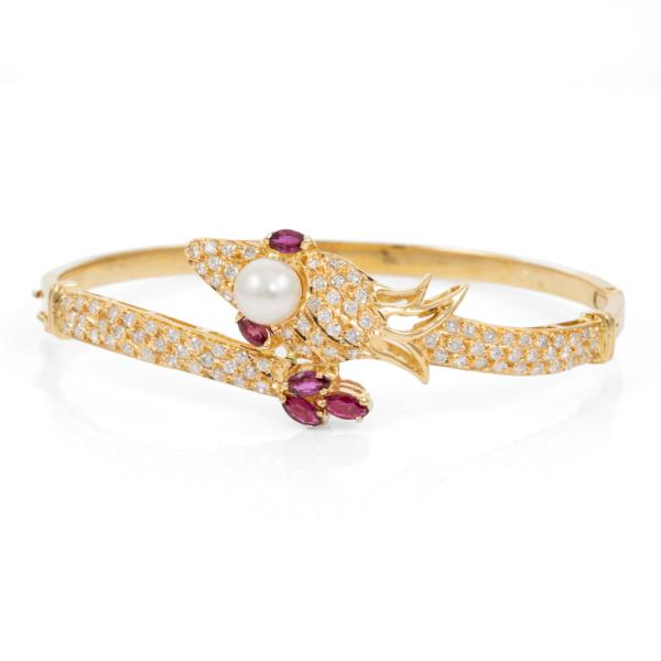Pearl, Ruby and Diamond Dragon Bangle