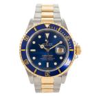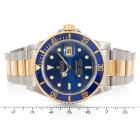 Rolex Oyster Perpetual Submariner Date 18ct yellow gold and stainless steel automatic mens watch. Blue dial, date, case diameter: 40mm, wrist size: 18cm, Swiss made. Ref# 16613. Circa: 1993. With Rolex two tone Oyster bracelet and clasp. With Certificate of Authenticity and Rolex box with Rolex gift bag. 3 month FSA warranty (Pre-owned)