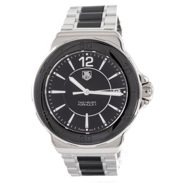 TAG Heuer Formula 1 stainless steel & ceramic quartz ladies watch. Black dial, date, case diameter: 37mm, wrist size: 14cm, Swiss made. Ref# WAH1210. With two-tone TAG Heuer bracelet and clasp. With Certificate of Authenticity, TAG Heuer warranty card dated 30/11/2019 and TAG Heuer box. 3 month warranty. (Pre-owned)