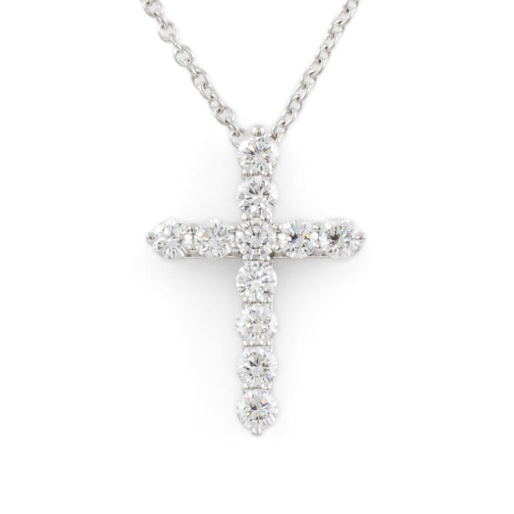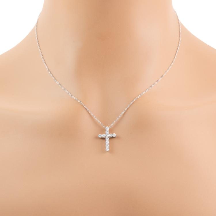 Tiffany & Co. Cross pendant small with round Natural Diamonds totalling approximately 0.42cts (Estimated grading: F-G VS). Platinum - 950 with 41cm Tiffany & Co. Platinum - 950 chain. Weight: 3.5g. With Tiffany & Co. box. (Pre-owned)