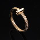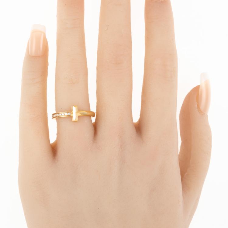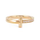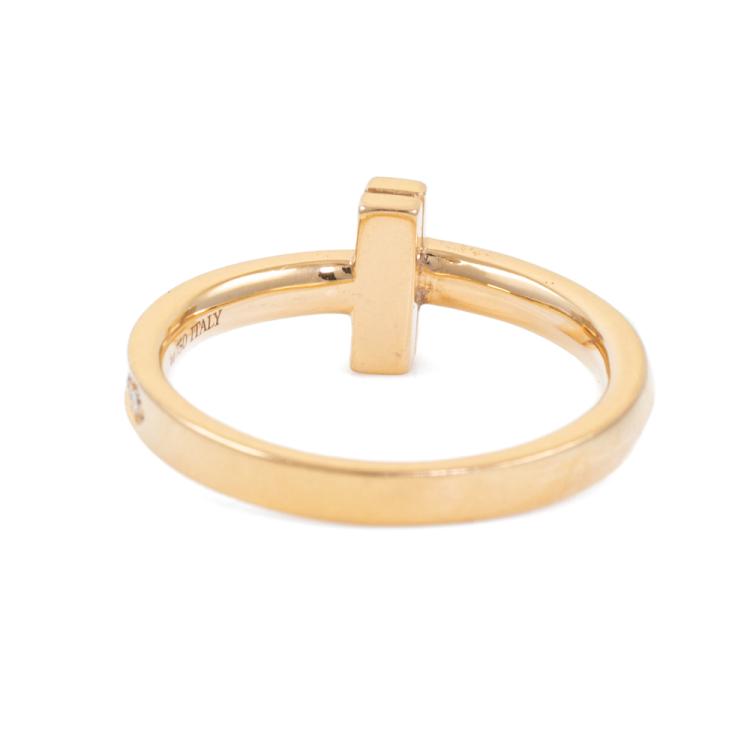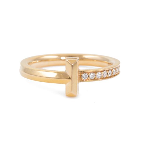 Tiffany & Co T1 ring with round natural Diamonds totalling 0.08ct. 18ct rose gold. Ring size K1/2 - ring resizing is not recommended. Made in Italy. Band width: 2.4mm. Weight: 4.1g. With Tiffany & Co. box. (Pre-owned)