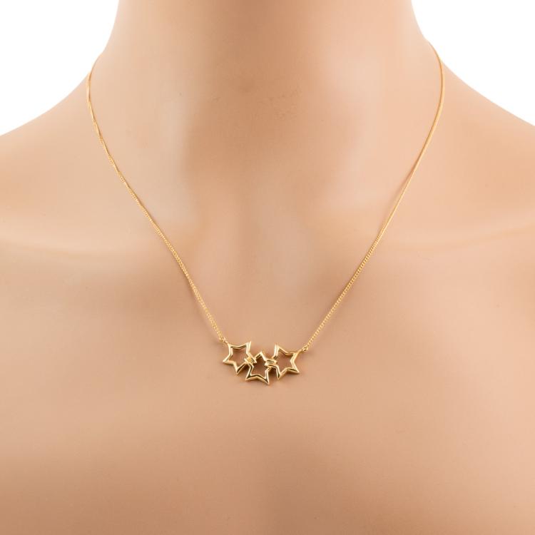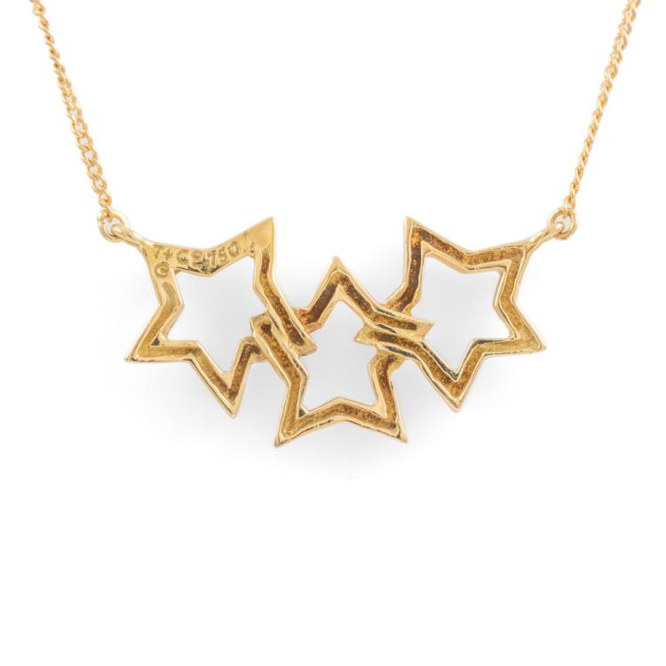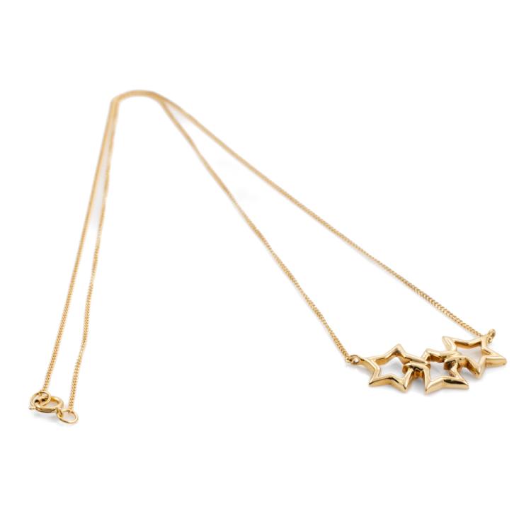 Tiffany & Co. Triple Star Necklace. Motif width: 25mm. 18ct yellow gold attached with 18ct yellow gold chain. Length: 46cm. Weight: 3.8g. (Pre-owned)