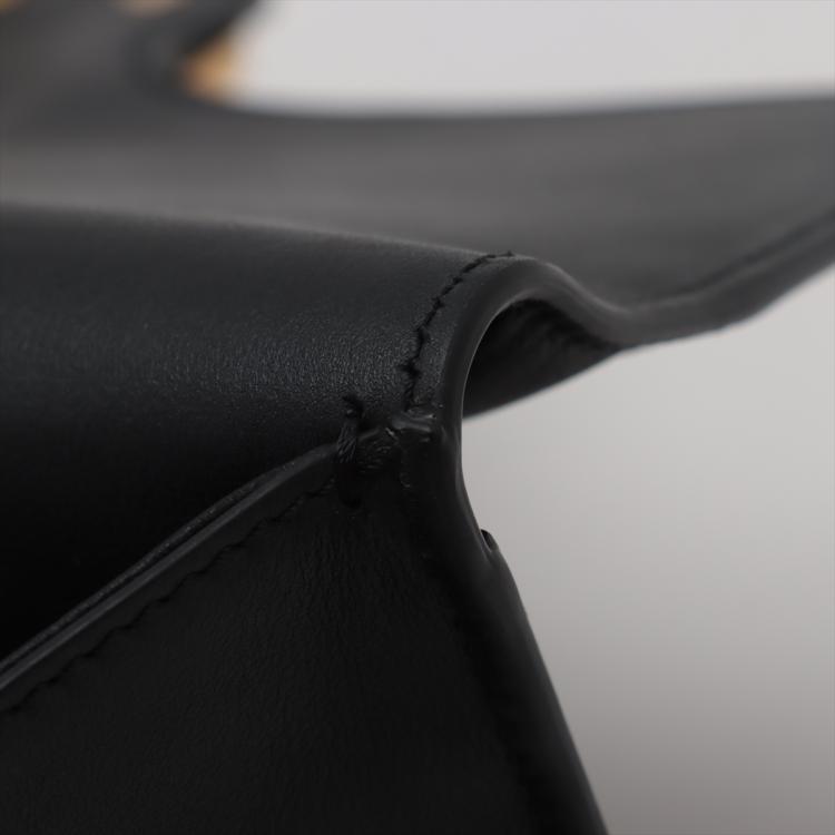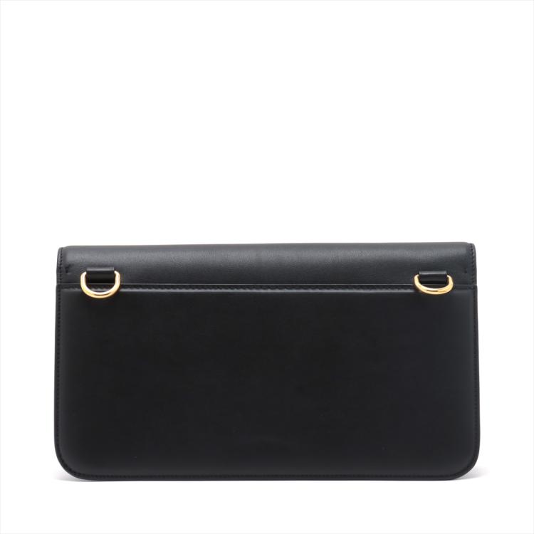 Valentino V logo 2way bag in black leather. Featuring gold-tone hardware, an exterior flat pocket at back, frontal flap with magnetic snap button with V logo plate detail. It opens to an black leather lining interior with flat pocket. Approximate dimensions: 31cm(L) x 17cm(H) x 6.5cm(D), 51cm adjustable strap drop height. Accompanied by a Valentino dust bag. With Entrupy Certificate of Authenticity. (Pre-owned)