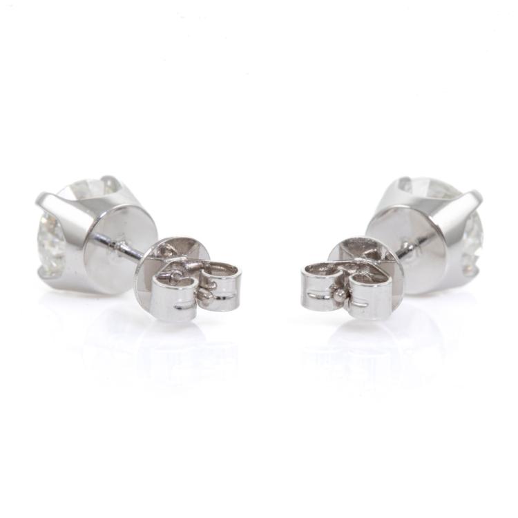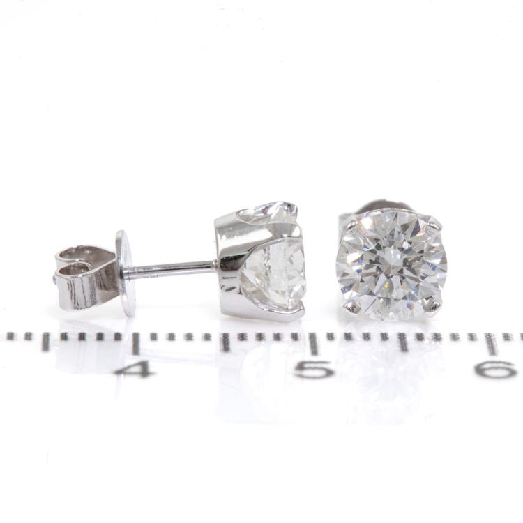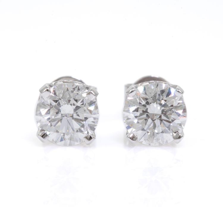 Diamond studs with 2 round brilliant cut Natural Diamonds totalling 2.00ct (with GIA Reports graded as G P1, #6432335844, 1438785855). 18ct white gold. Weight: 2.3g (New)