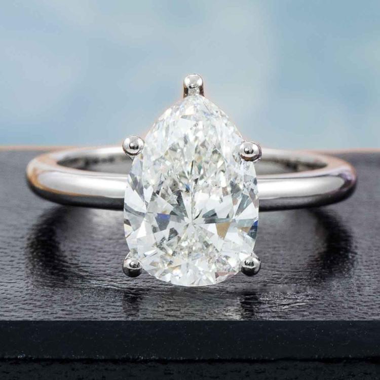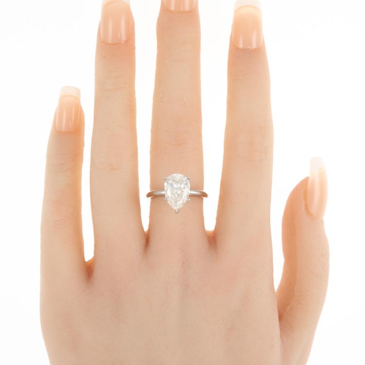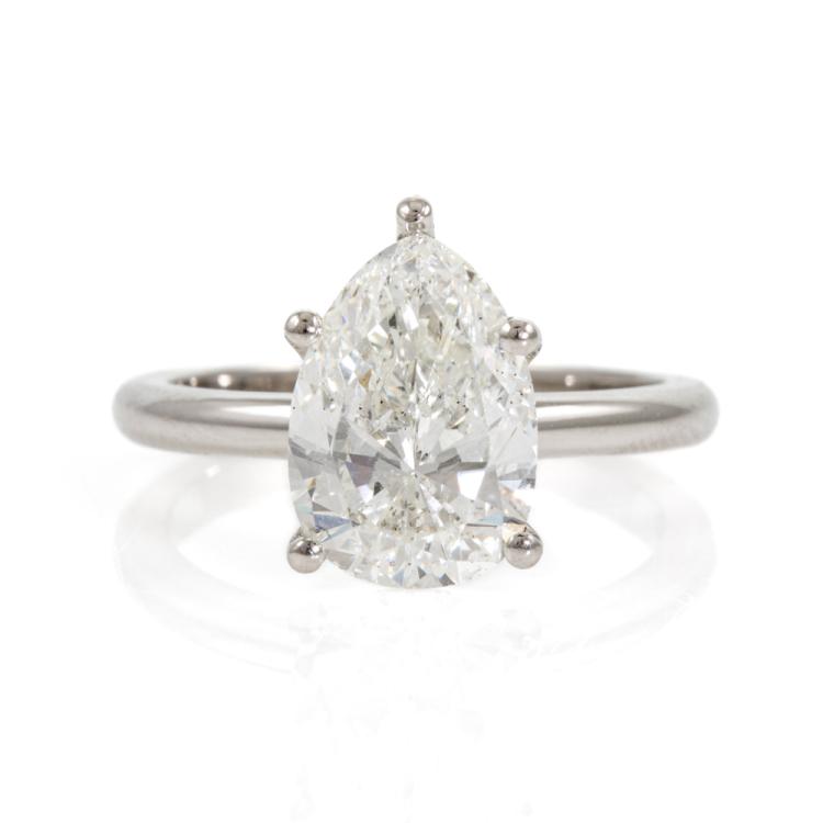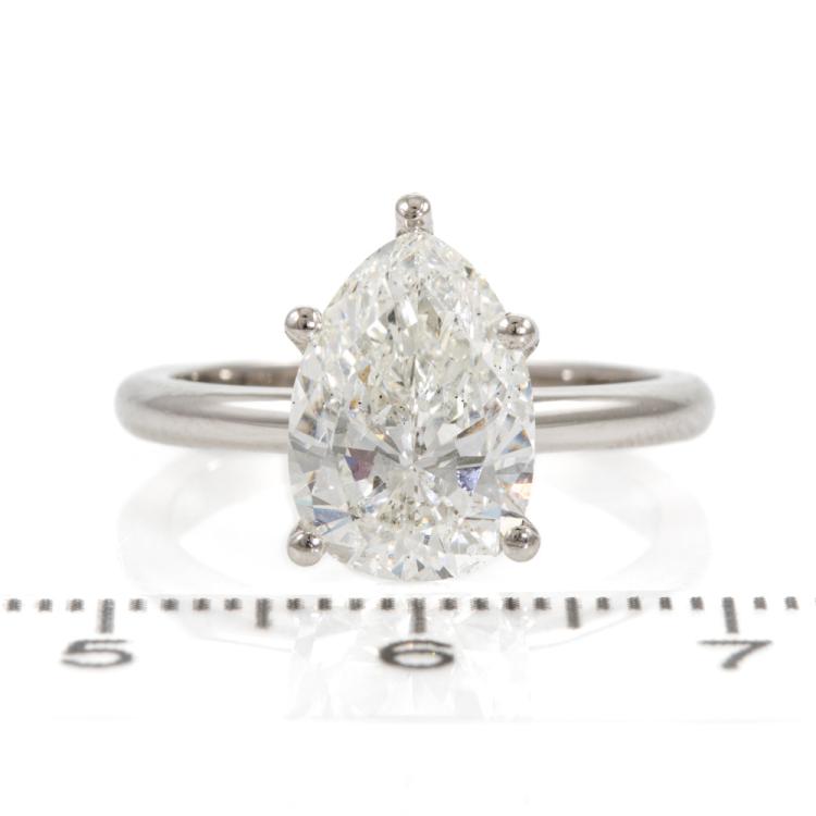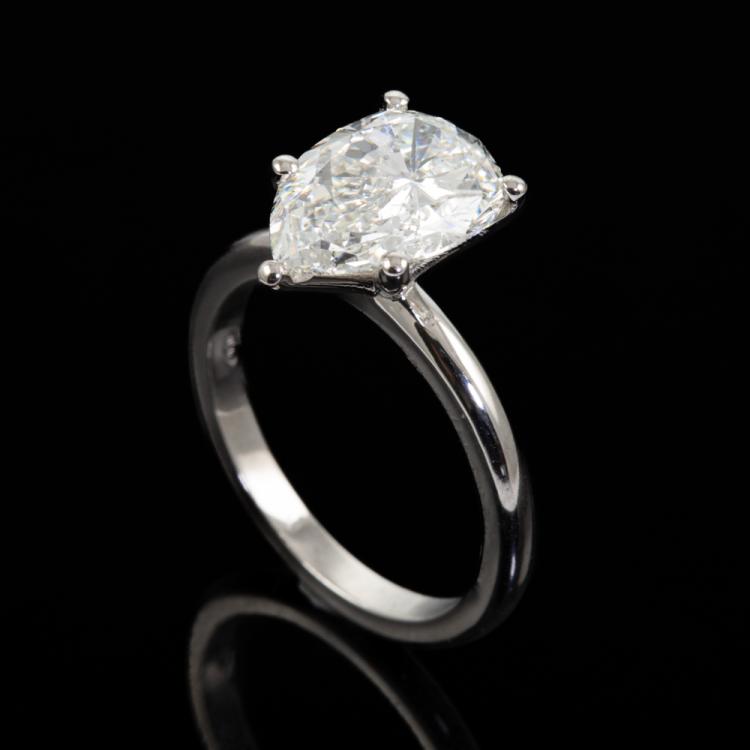 Diamond solitaire ring with pear shape natural Diamond of 3.01ct (with GIA Report graded as I P1 #1483791328). Platinum. Ring size: L. Band width: 2.1mm. Weight: 6.2g. With Valuation Certificate #418650. (New)