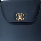 Chanel vintage mini Kelly shopping bag in black satin(#5xxxx18). Featuring an exterior patch pocket at back, double top handles, gold-tone hardware. The frontal flap with interlocking CC turn-lock closure opens to a leather lining interior with zipper and patch pockets. Approximate dimensions: 23.5cm(W) x 17cm(H) x 7.5cm(D), 9.5cm handle drop. Accompanied by a Chanel dust bag. With Entrupy Certificate of Authenticity. (Pre-owned)